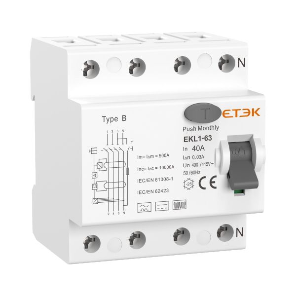 EKL6-100B B型電磁式漏電斷路器適?于交流50Hz,額定電壓?415V,額定電流至63A電路中,用于檢測(cè)交流漏電、脈動(dòng)直流漏電、平滑直流漏電、復(fù)合波漏電和最高至1kHz?頻漏電。當(dāng)人身觸電或電路泄露電流超過(guò)規(guī)定值時(shí),漏電斷路器在極短的時(shí)間內(nèi)自動(dòng)切斷故障電源,保護(hù)人身及用電設(shè)備安全,斷路器亦可在正常情況下作為線路的不頻繁切換操作之用。